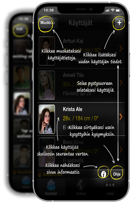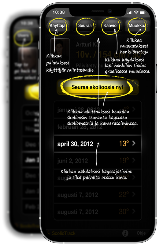 ScolioTrack Pro on yhtä tarkka kuin lääkäreiden käytössä oleva skoliometri. Sovelluksen avulla voit seurata asennon, pituuden ja painon muutoksia. Asentomuutoksien seurantaan sovellus käyttää puhelimen kameraa.