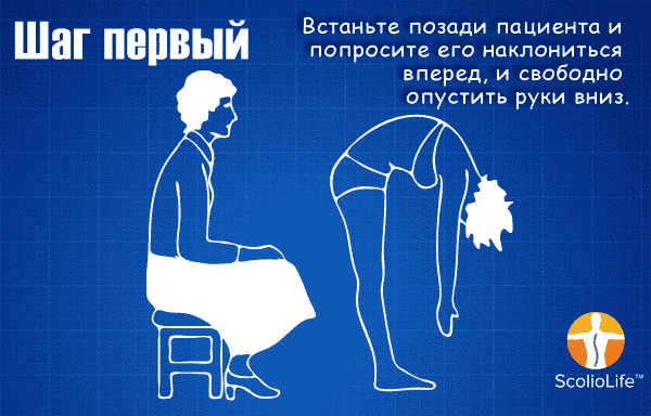 Скрининг сколиоза прост. Большинство родителей способны провести скрининговый тест с высокой степенью точности самостоятельно. Стандартный тест на сколиоз называется тестом Адамса на изгиб вперед. Детей просят наклониться в талии, и потянуться руками к пальцам ног. Обследующий располагает глаза на одном уровне со спиной и смотрит, не выше ли одна сторона, чем другая, или нет ли асимметрии спины. Даже родители без медицинского образования могут обнаружить относительно небольшие искривления, если будут внимательно смотреть.